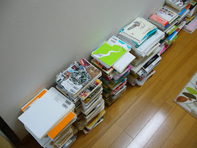 これが数日前の部屋の状態。今はここに出ているのはだいたいスキャンしたので、本棚から持ってきている。